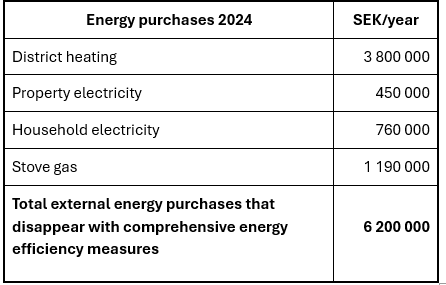 The increases in the annual fee of 10 per cent introduced on 1 January 2025 and 3 per cent on 1 January 2026 were not needed. The association’s energy losses can easily be reduced by amounts corresponding to the income generated by the increases. When energy losses are eliminated, permanent measures are taken that lock the energy use at a lower level. Dealing with increased energy costs by repeatedly raising the annual fee leads to the wrong thing: unreasonable housing costs and depressed value of the tenant-owned apartments. Financial instability is created!