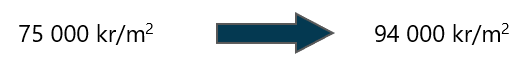 A reasonable assessment is that the apartment value will rise by 15 percent when all measures are implemented. In associations that have carried out thorough energy efficiency improvements, there is an increase in value at this level when compared with equivalent tenant-owned apartments in the same area. Given that the association shares with new apartment speculators the plan for energy autonomy, minimal climate impact and low annual fees, a certain increase in value can take place already when the measures begin. An increase in value of 15 percent means that today’s value of around SEK 75,000/m2 rises to SEK 94,000/m2.