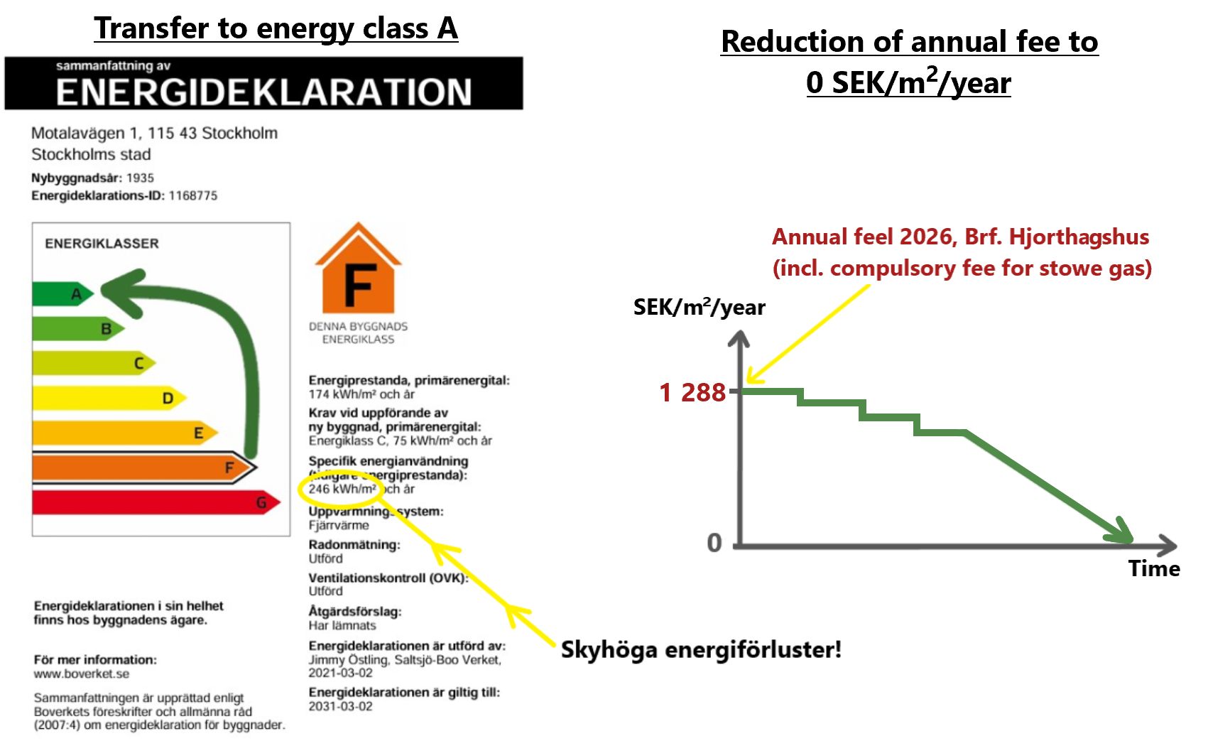 Hjorthagshus has among the highest annual fees in Sweden. The reason for the high annual fee is mainly the sky-high energy losses.